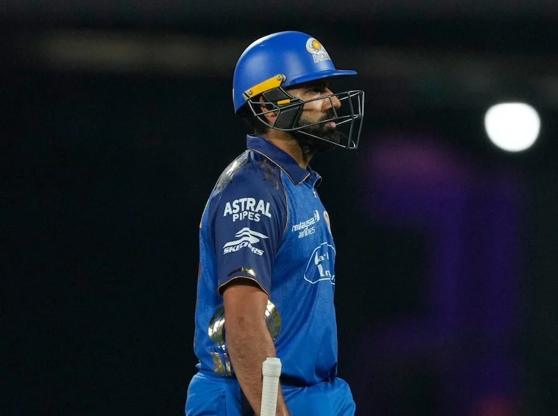 Rohit Sharma, batting on 19 off 13 balls, walked off the pitch during Mumbai Indians’ chase of 241 against Royal Challengers Benglauru at the...
