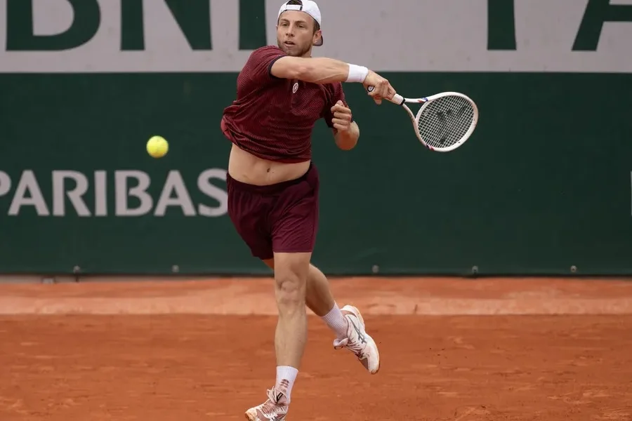 May 31, 2025; Paris, FR; Tallon Griekspoor of the Netherlands returns a shot during his match against Ethan Quinn of the United States on day seven...