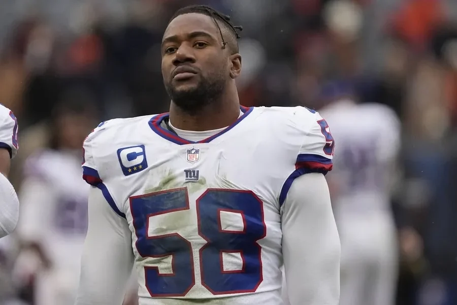 Nov 9, 2025; Chicago, Illinois, USA; New York Giants linebacker Bobby Okereke (58) leaves the field after losing to the Chicago Bears at Soldier Field. Mandatory...