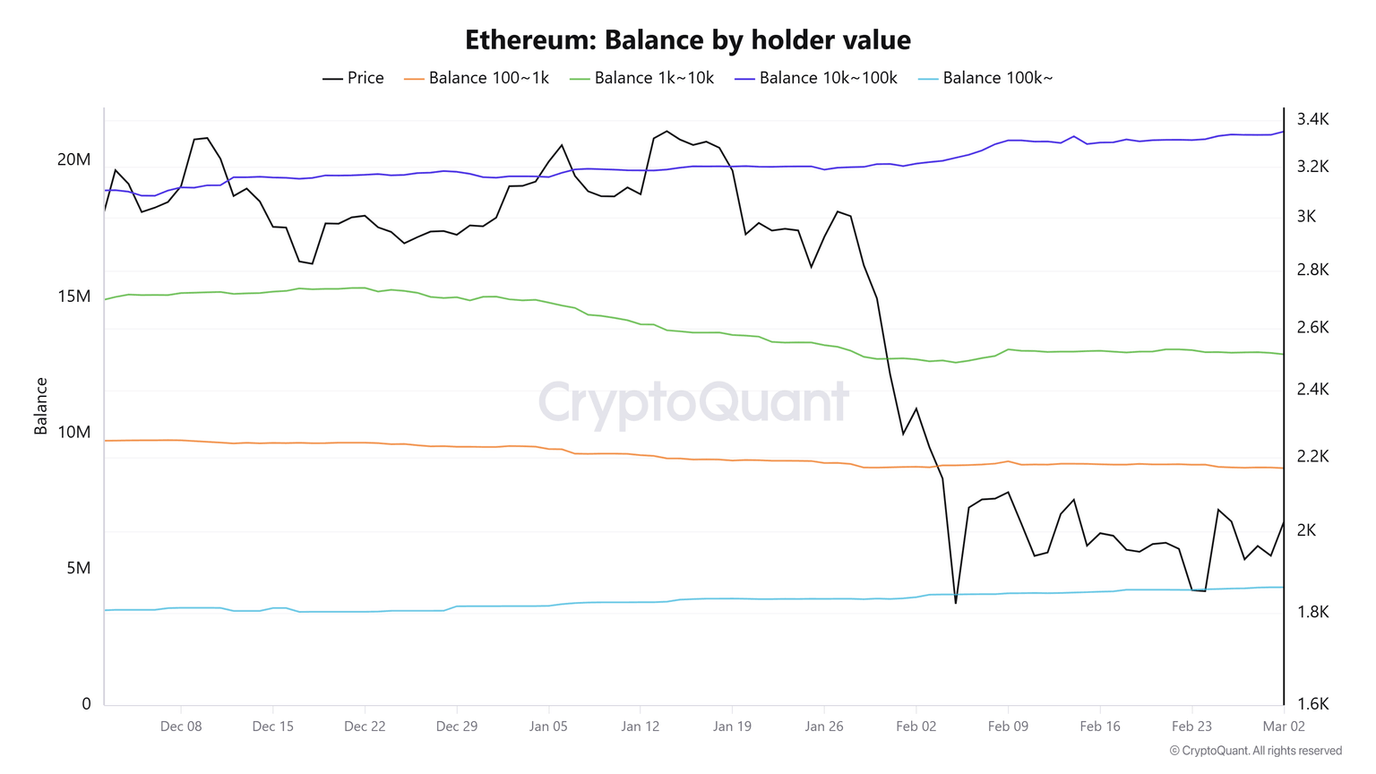 - Large holders accumulated 320K ETH in the past week while smaller investors offloaded 210K ETH