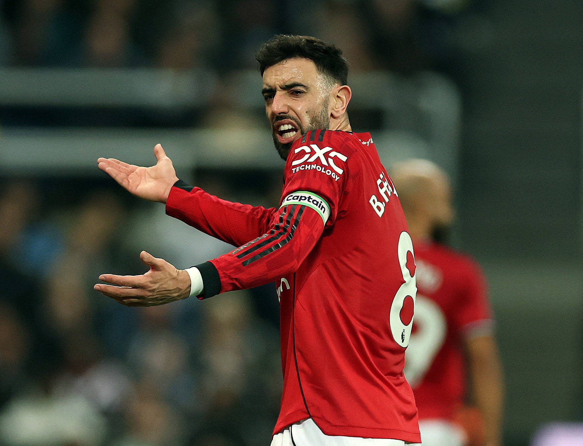 ‘45+’3: The late first-half drama continues! Newcastle have been reduced to 10 but have a penalty! Gordon cuts into the box, Bruno Fernandes catches him and brings his man down – and Bankes points to the spot!