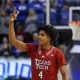 Mar 7, 2026; Provo, Utah, USA; Texas Tech Red Raiders guard Christian Anderson (4) reacts to a made three point shot during the second half against...