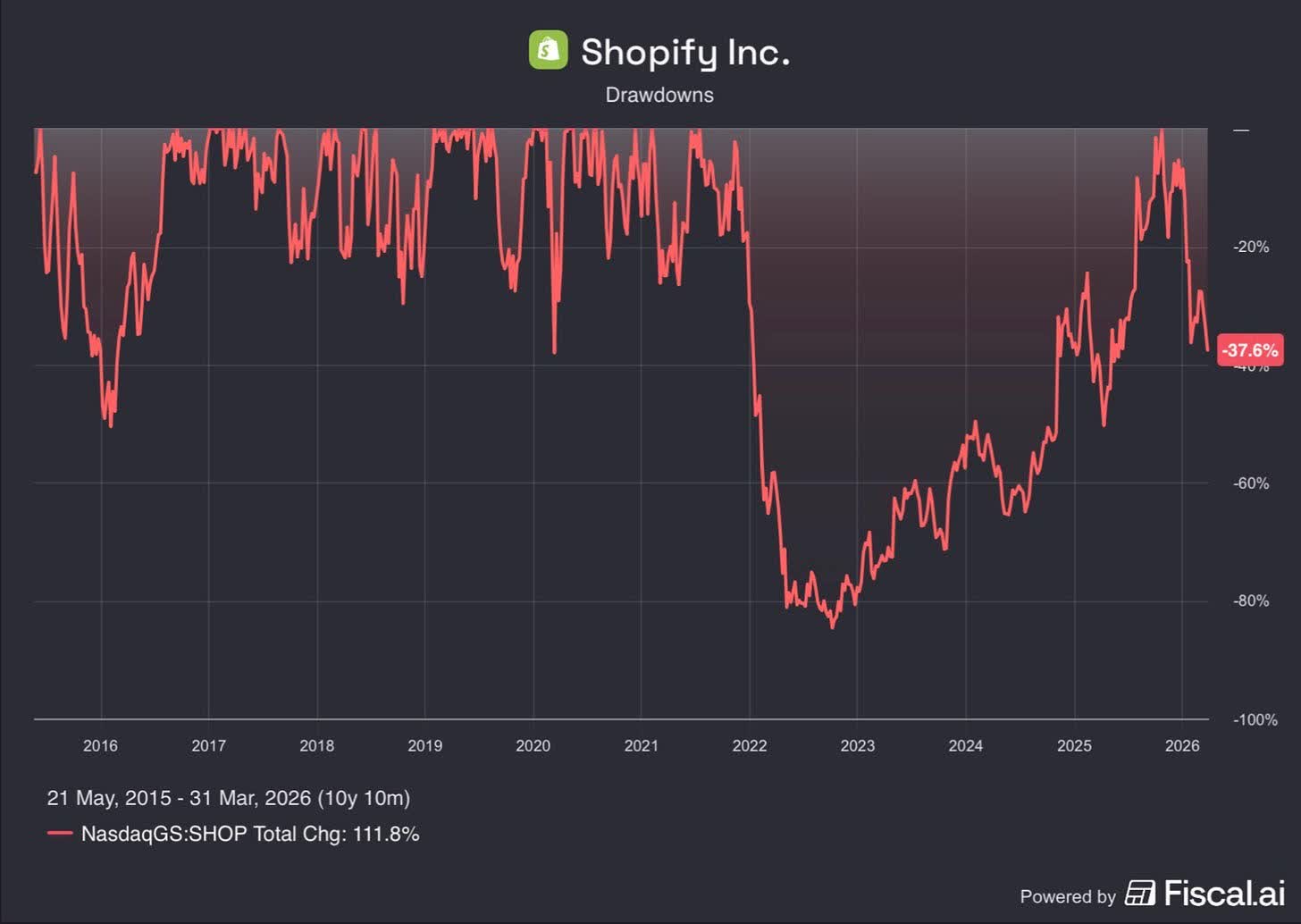 More recently the stock has again declined meaningfully — down 26% at quarter-end, though it has since recovered to approximately -17% as of mid-April. There is nothing unusual about that. It is the same pattern, playing out again.