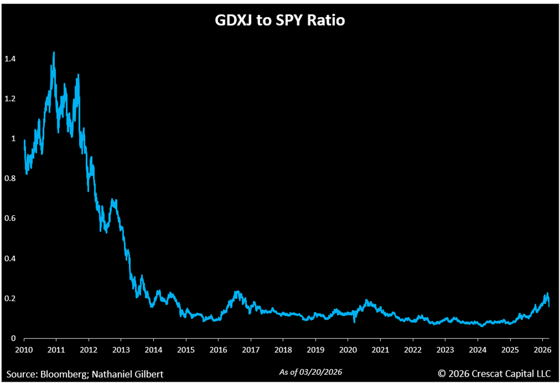 At the same time, it takes about 15 years on average to advance a mining project from discovery to production. The world needs more metals now for AI datacenters, electrification, new US manufacturing onshoring, and defense, but the pipeline of new economic discoveries and viable development projects is scarce. These are the primary reasons we believe the cycle has strong legs for an entire decade ahead and this is why we favor the small cap explorers at this stage of the cycle. These companies carry risk and should be held in a professionally managed diversified portfolio, such as through our funds, but offer significantly more upside than the large-cap mining indices and ETFs in our view.