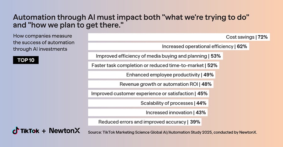 Looking ahead, TikTok continues to distinguish itself as a long-term partner in AI-driven transformation. Globally, 78% of advertisers and executives agree that the platform is continuously innovating in this space, while 96% believe its AI tools are on par with or exceed those of its competitors.