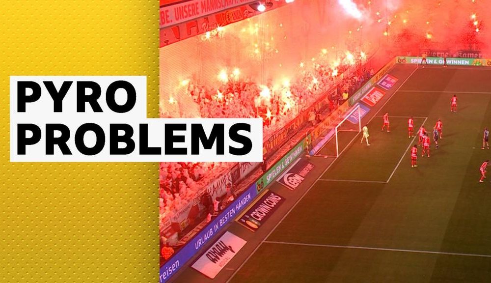 Watch the moment a referee is forced to stop play in the match between Union Berlin and Eintracht Frankfurt in the Bundesliga, after the home fans...