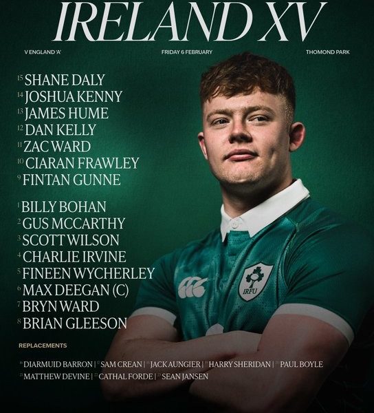 Head Coach Cullie Tucker has named the Ireland XV Match Day Squad for Friday night’s clash against England ‘A’ at Thomond Park. Leinster’s Max Deegan will captain the side...