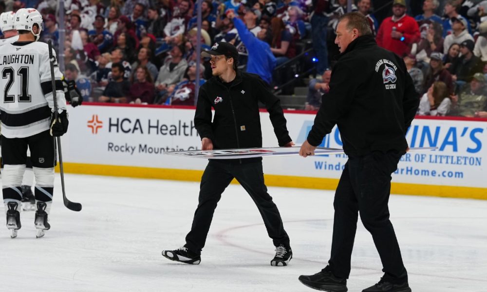 DENVER — Los Angeles interim coach D.J. Smith quickly ducked when shattered glass fell on him after a pane broke behind the Kings bench Tuesday night...