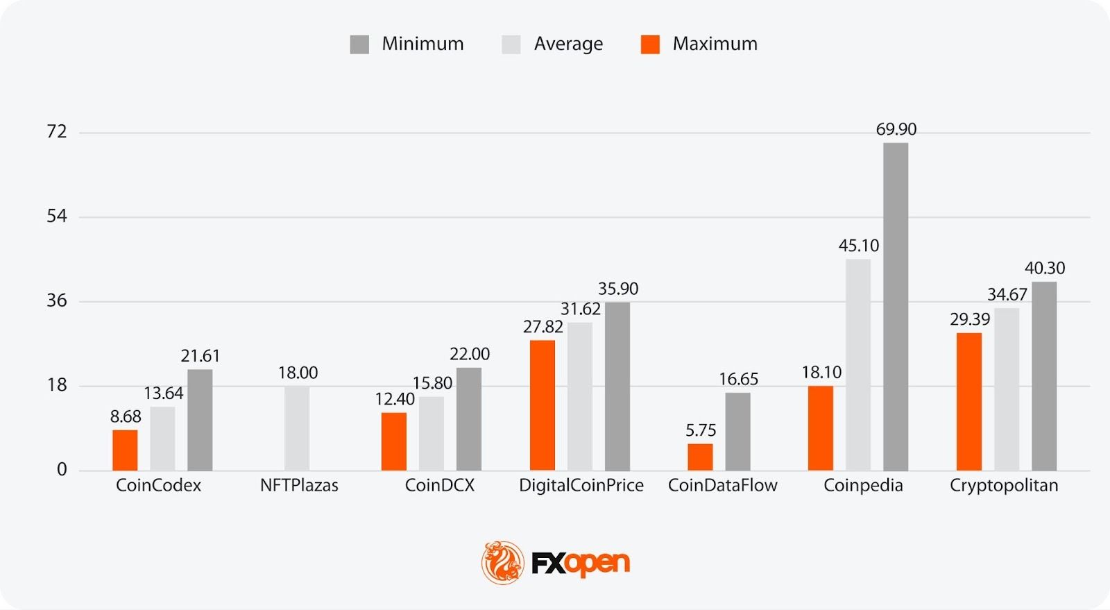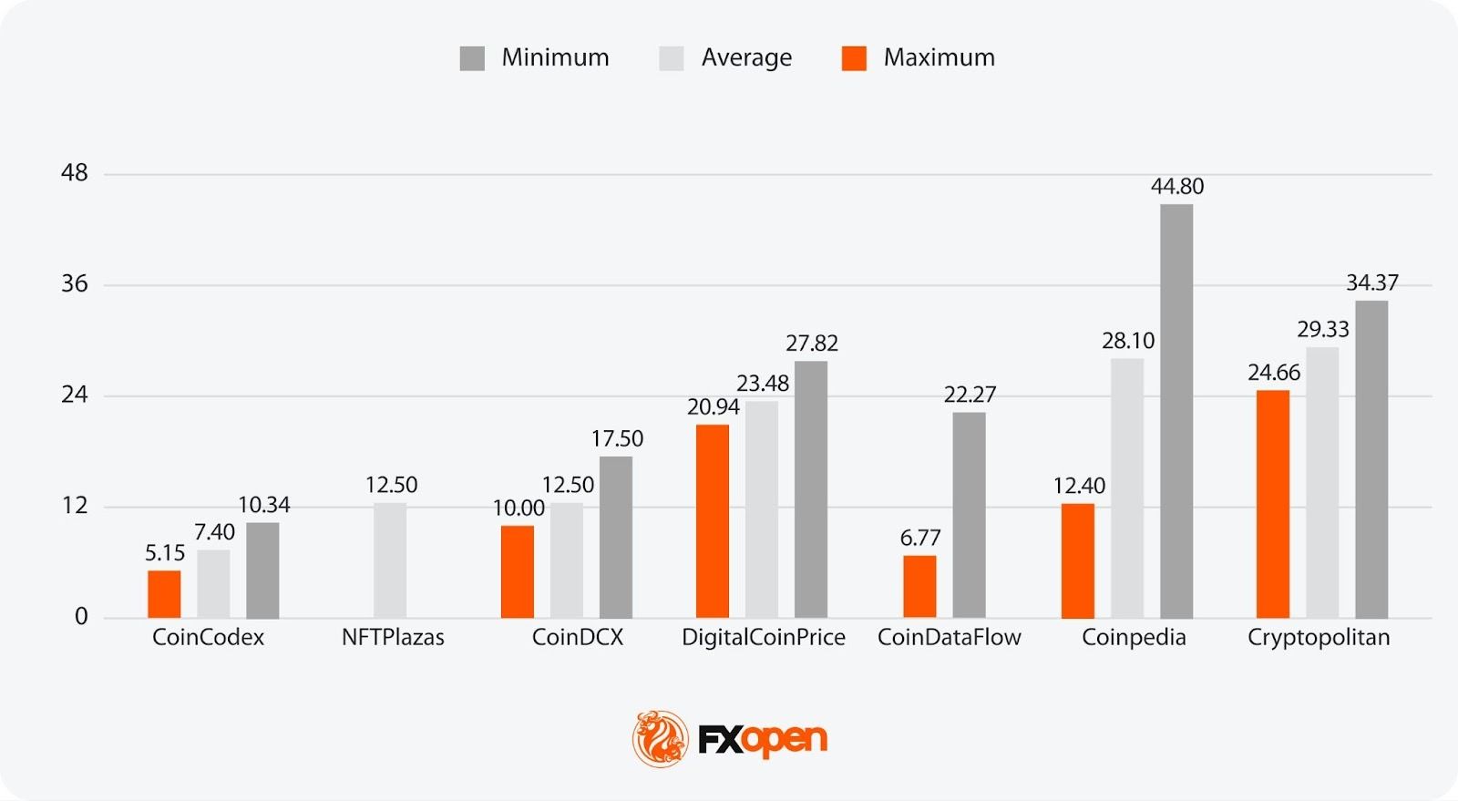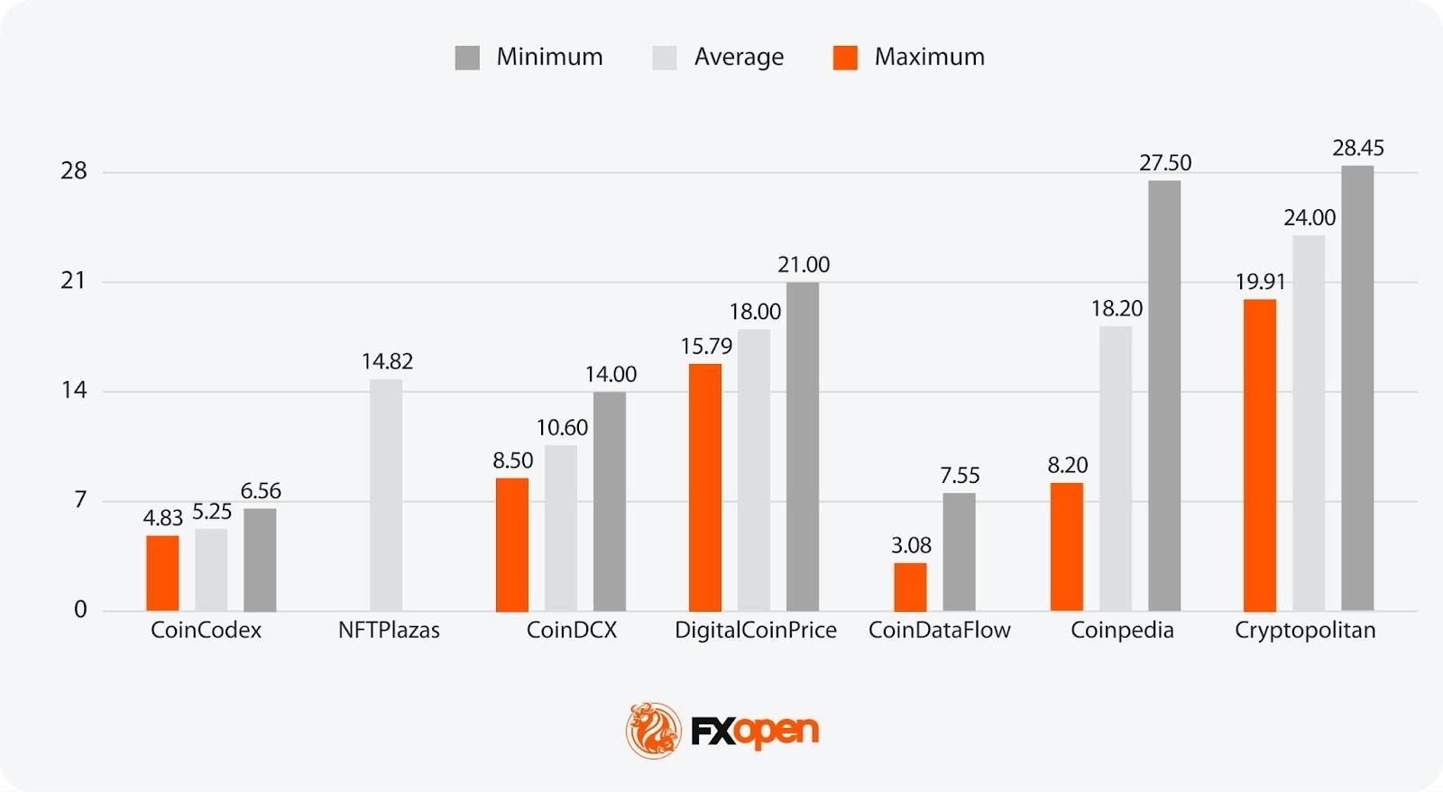 Predictions broaden to around $3.08 to $28.45, with averages typically in the mid-teens. Outlooks diverge sharply, highlighting uncertainty around long-term utility versus continued speculative trading.