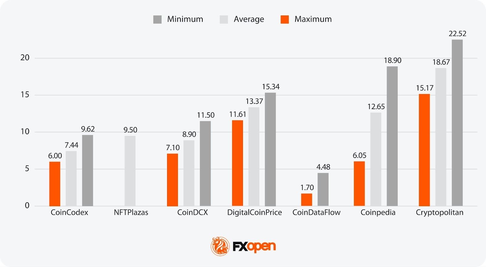 - Most Bullish Projection: 18.67 (Cryptopolitan)