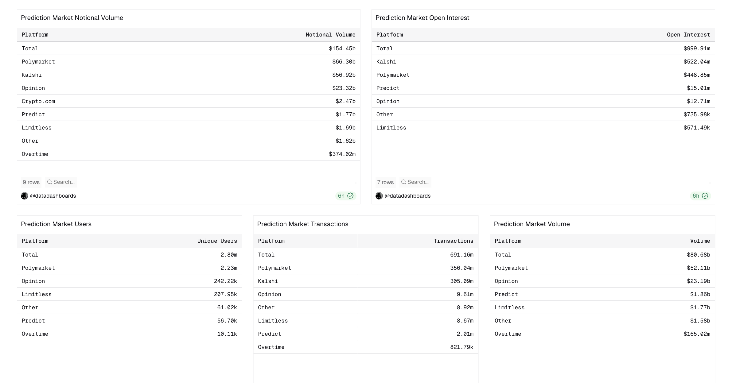 Prediction markets have processed more than $154 billion in total volume, with daily trading on Polymarket alone often exceeding $300 million.