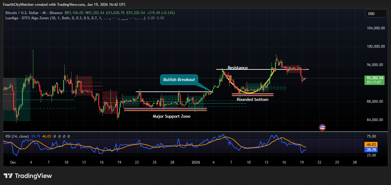 Following this support, Bitcoin formed a rounded bottom pattern between January 6 and January 12, signaling a shift from bearish to bullish sentiment. The rounded bottom reflects a gradual loss of selling momentum, allowing buyers to regain control.