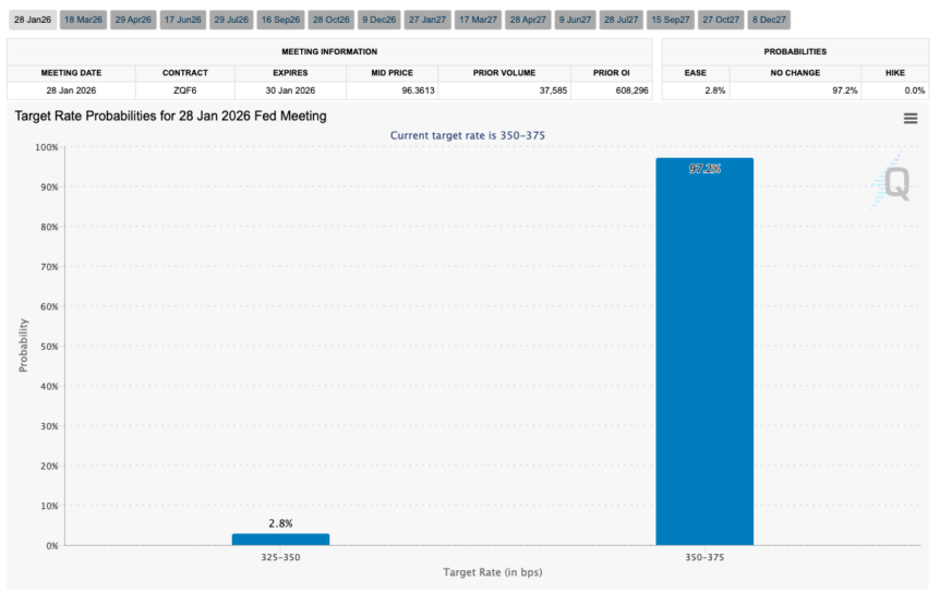 Fed target rate probabilities for Jan. 28 FOMC meeting. Source: CME Group FedWatch Tool