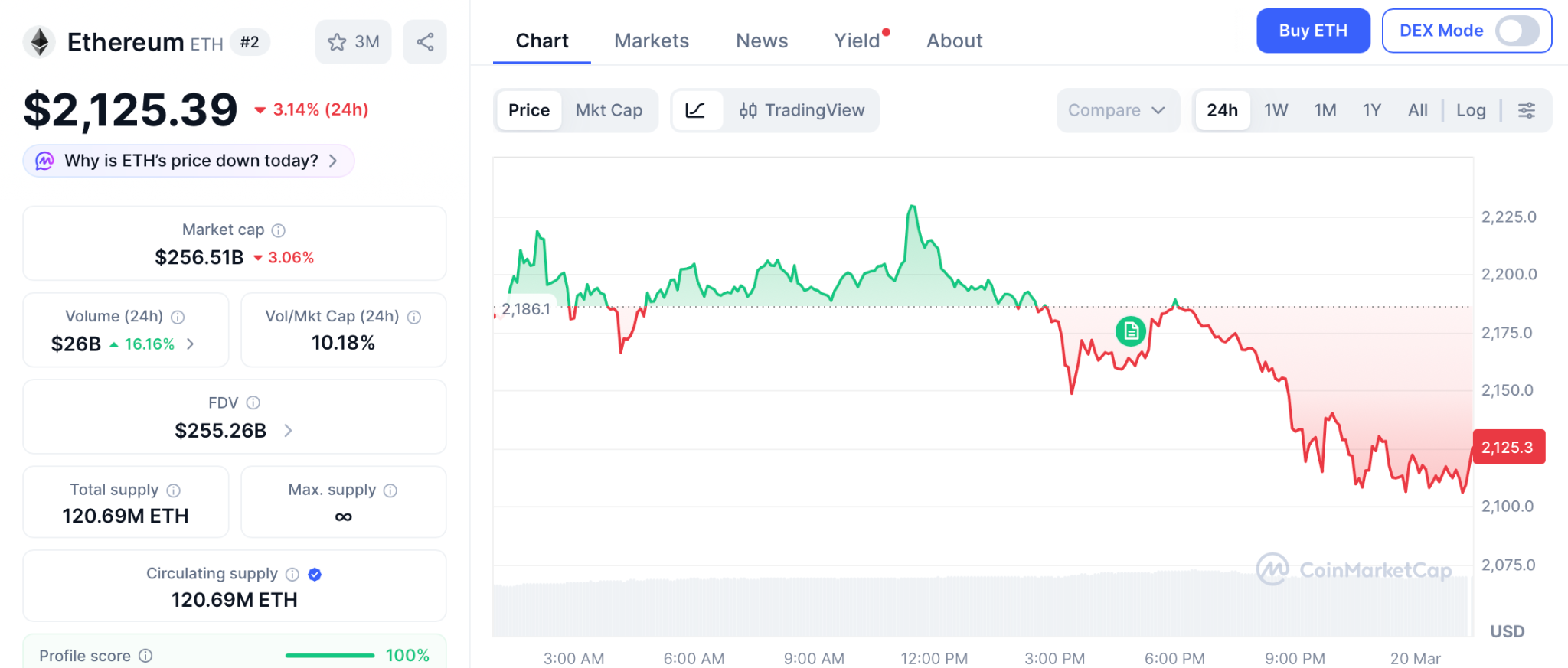 ETH trades near $2,125, roughly 55% below its $4,878 ATH according to CoinMarketCap. Over $50 billion in DeFi TVL keeps Ethereum as the default smart contract chain.