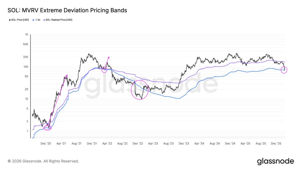 However, it is not all doom and gloom. Solana’s MVRV extreme deviation bands suggest a potential floor at $75. Historically, SOL has staged rallies, like the 87% bounce in March 2022, after testing these lower boundaries.