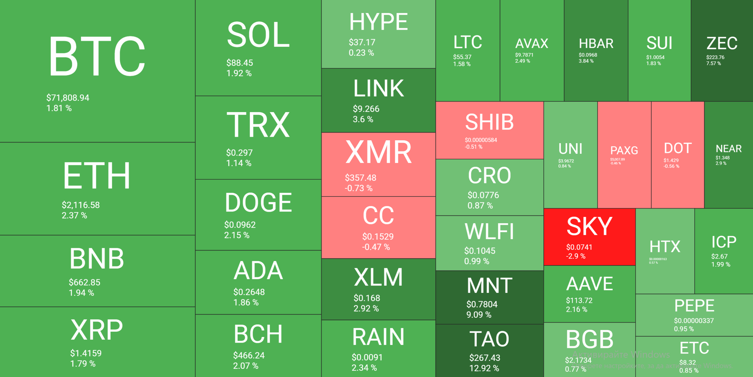 Bitcoin was trading around $71,350 at the time of publication, up roughly 6% over the past week and more than 7% over the past 30 days, according to CoinMarketCap data.