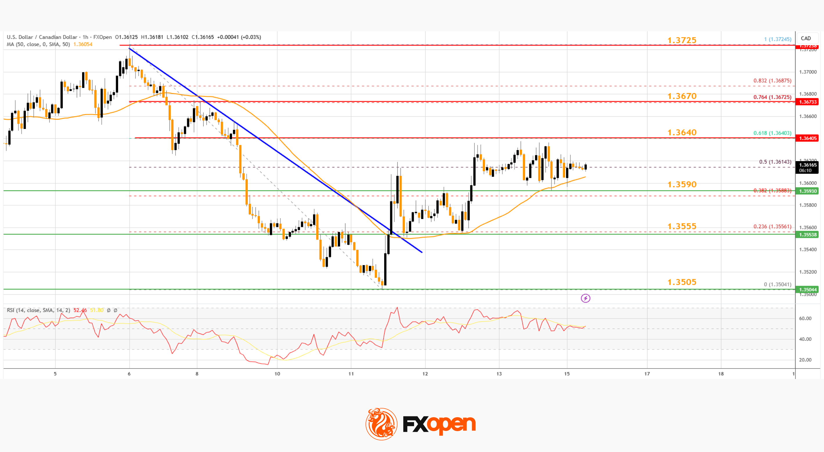 On the hourly chart of USD/CAD at FXOpen, the pair formed a strong base above 1.3500. The US Dollar started a fresh increase above 1.3540 and 1.3550 against the Canadian Dollar.