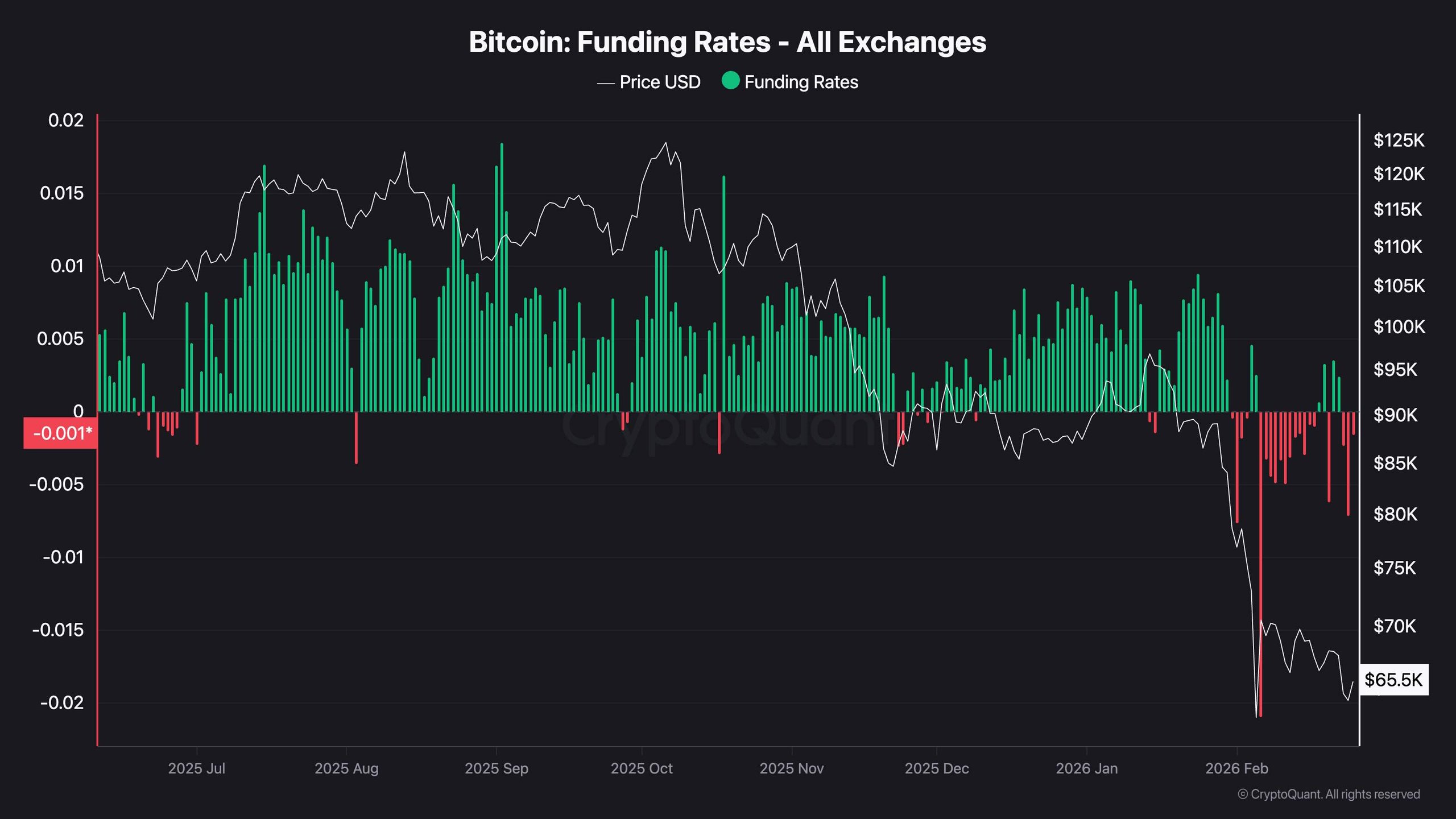 The combination of price holding near support and funding remaining below neutral suggests a fragile equilibrium. If Bitcoin maintains stability above $60K, the elevated short positioning could fuel a corrective bounce. Conversely, renewed downside pressure could push funding deeper into negative territory, reinforcing bearish continuation.