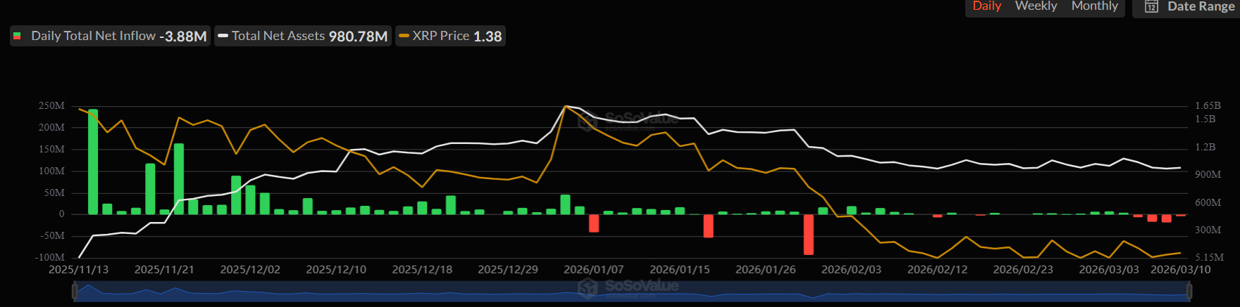 The fading interest in spot XRP ETFs is another development that won’t sit well with the bulls. Data shows that outflows have surpassed inflows over the past four days, suggesting that major institutional players, such as pension funds, hedge funds, and asset managers, have been scaling back their positions.