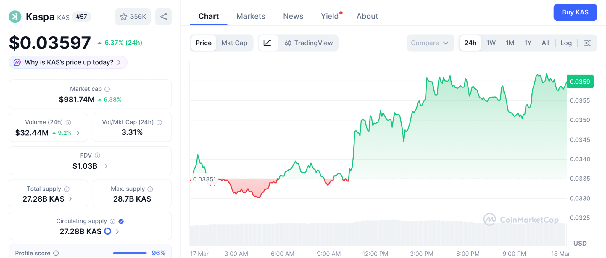 Kaspa holds at $0.035 as of March 17 with a loyal community and consistent on chain transaction volumes that reflect real usage. But analysts project a potential dip toward $0.027 by mid April before any meaningful recovery comes through.