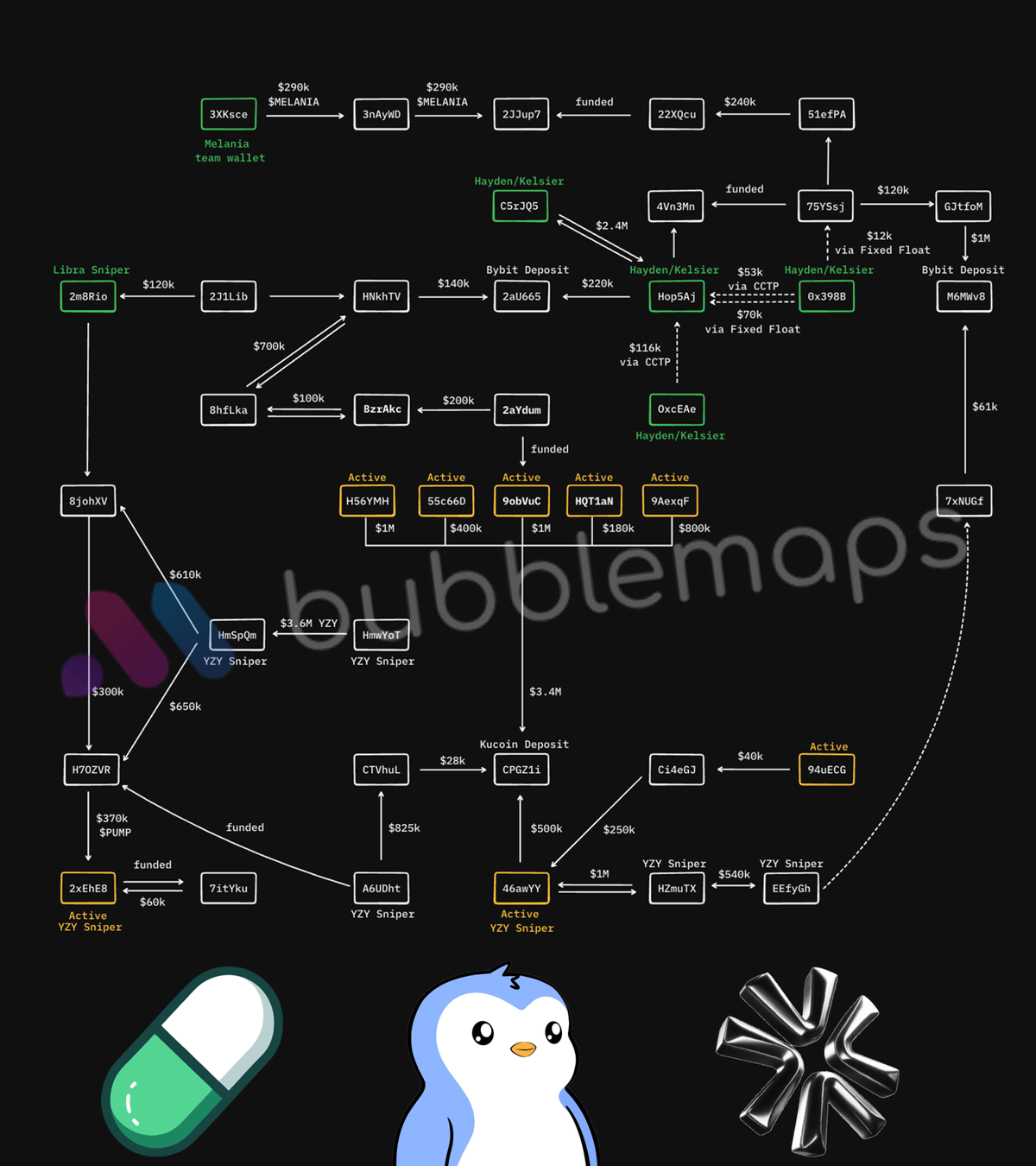 How Hayden Davis Trades Several Meme Coins, Including PUMP and PENGU. Source: X/Bubblemaps