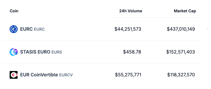 Issued by Circle Internet Financial Europe, the Paris-based arm of USDC issuer Circle, EURC is the largest euro-pegged stablecoin on the market. It currently accounts for about 49% of the $887 million euro-pegged stablecoin market cap, according to CoinGecko