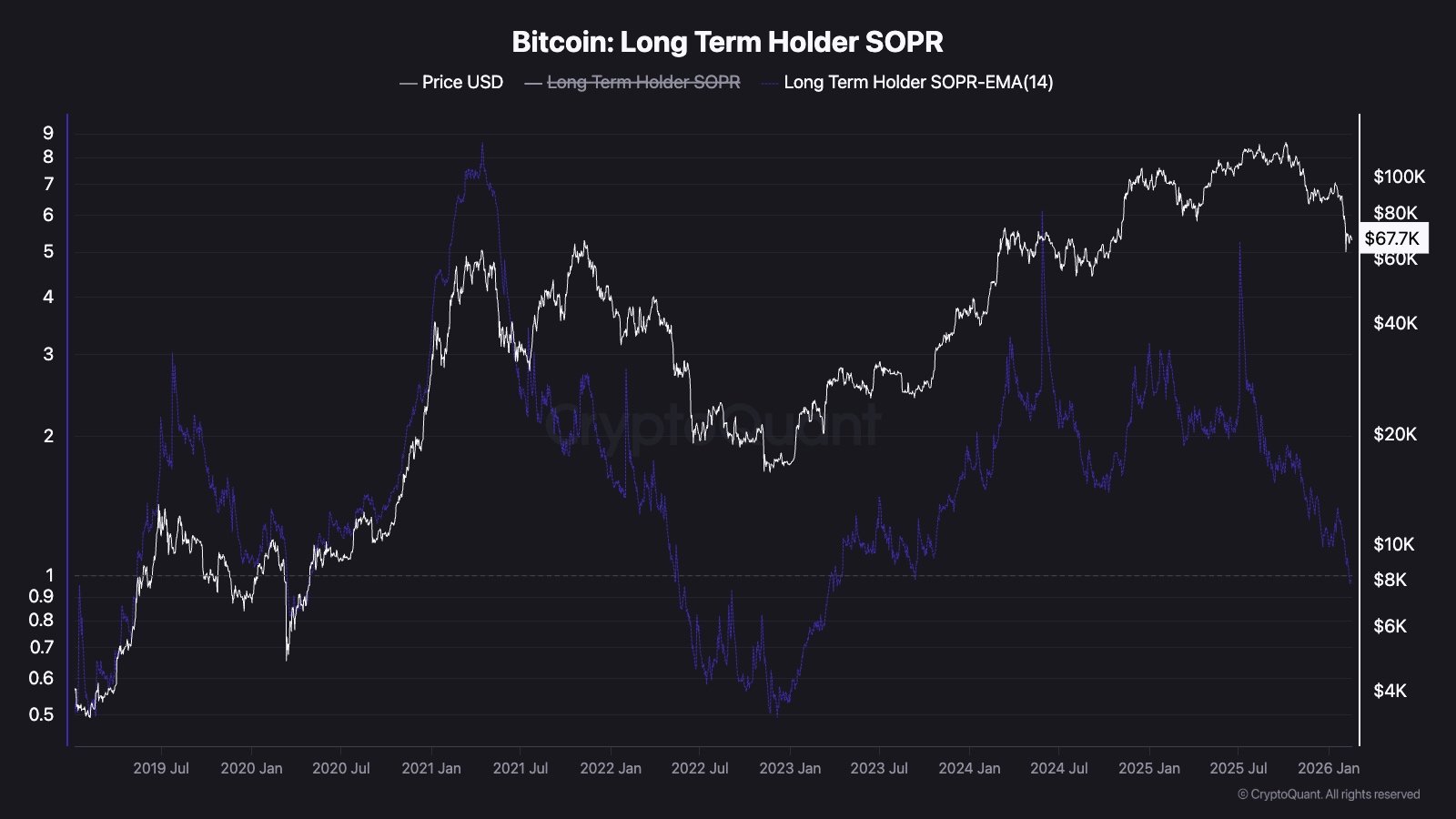On-chain data from the Long-Term Holder SOPR (LTH-SOPR) suggests that sustained downside pressure is beginning to affect even Bitcoin’s most resilient cohort, marking a subtle but important shift in market dynamics.