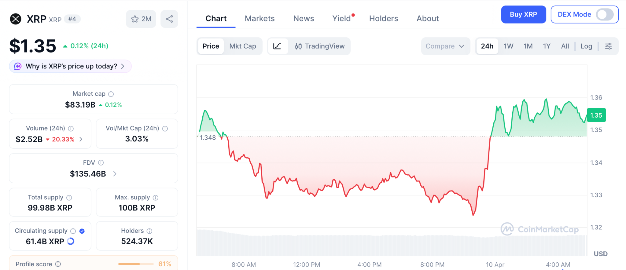 XRP trades at $1.35 on April 10, down 62% from its $3.65 July 2025 peak, per CoinMarketCap. The XRP price prediction depends on holding $1.35 and clearing $1.42 to open $1.50 then $2.00. Analysts say XRP needs the ceasefire to hold, the CLARITY Act to advance, and the Fed to signal cuts before $2 is in play.