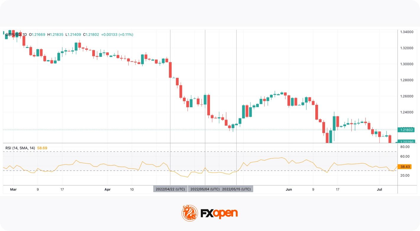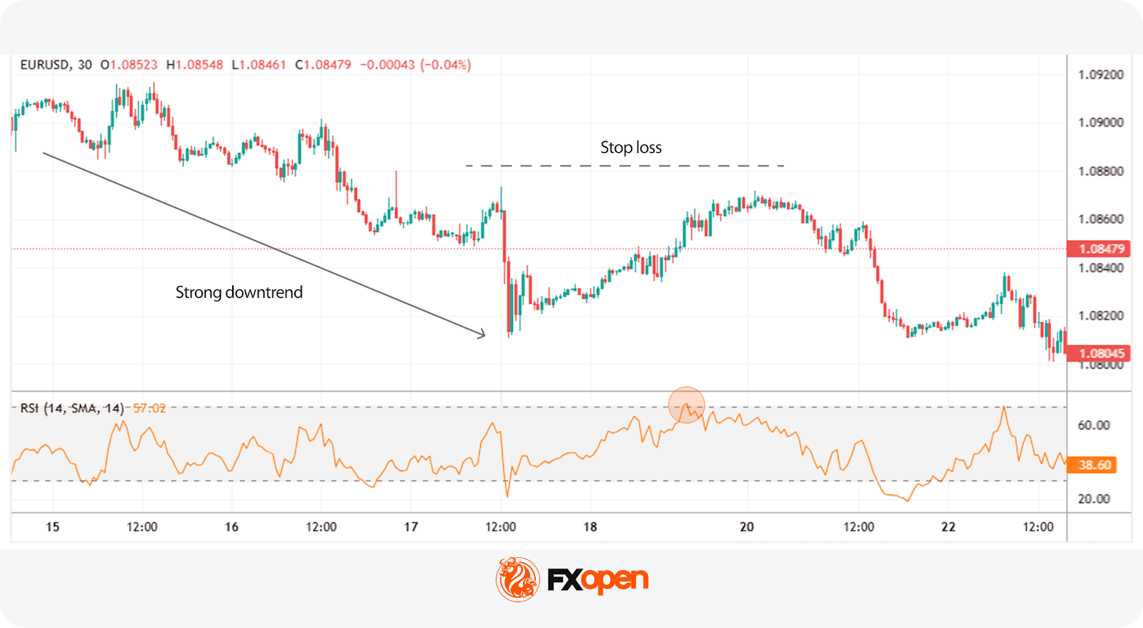 Failure swings are more common on short-term timeframes and do not always reflect a trend reversal. Therefore, traders combine the RSI with trend and volume indicators.