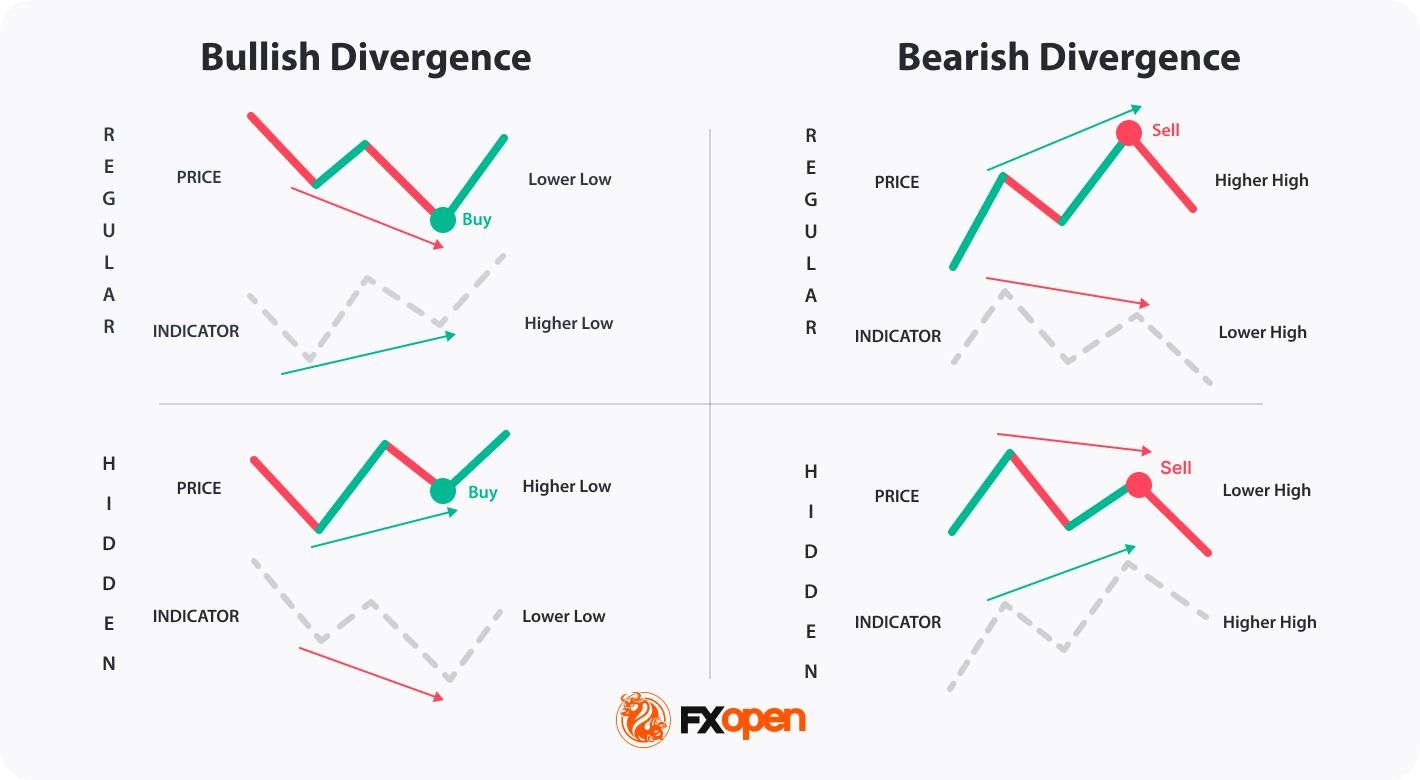 Hidden divergence is another variation that signals trend continuation rather than reversal. In trending markets, this form of divergence may help traders identify pullbacks that are likely to resolve in the direction of the prevailing trend.