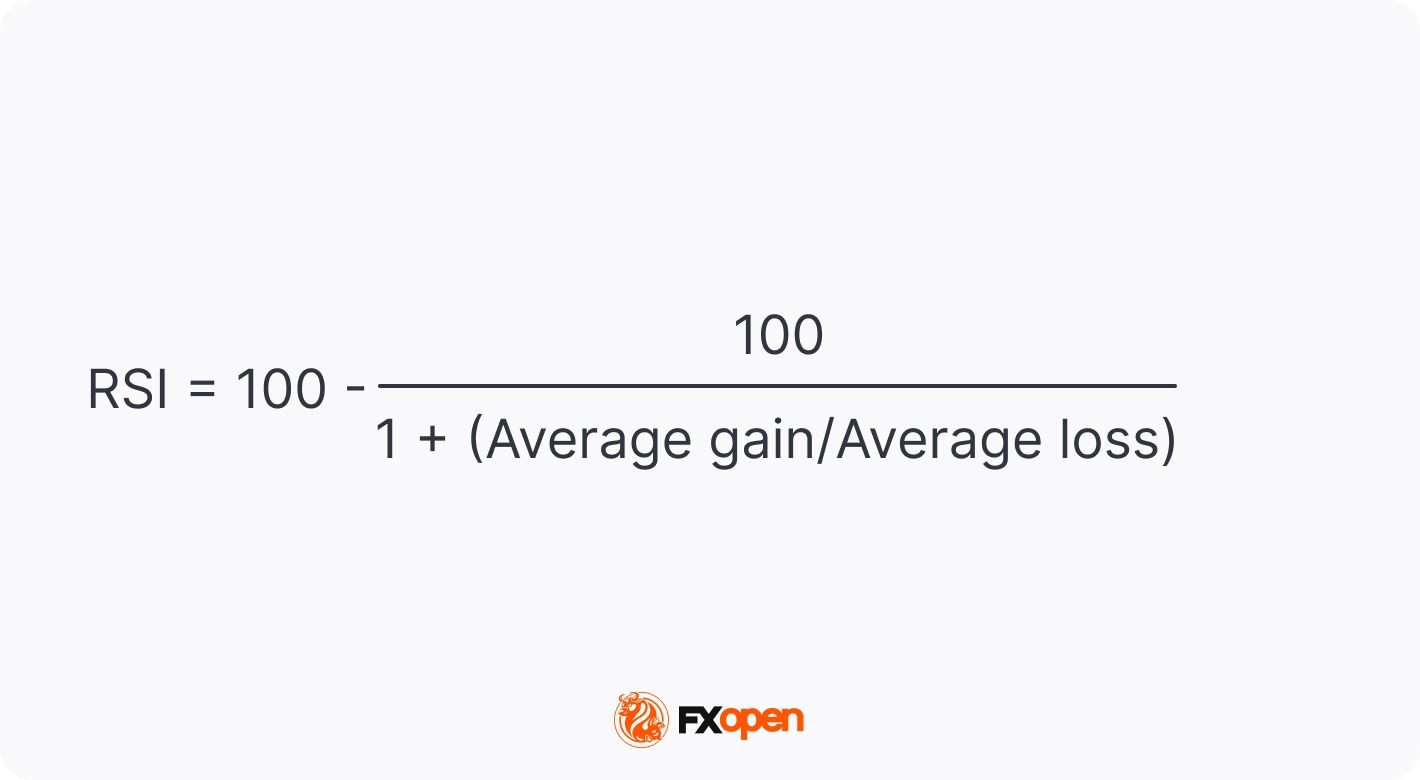 Relative Strength Index = 100 – 100 / (1 + RS)