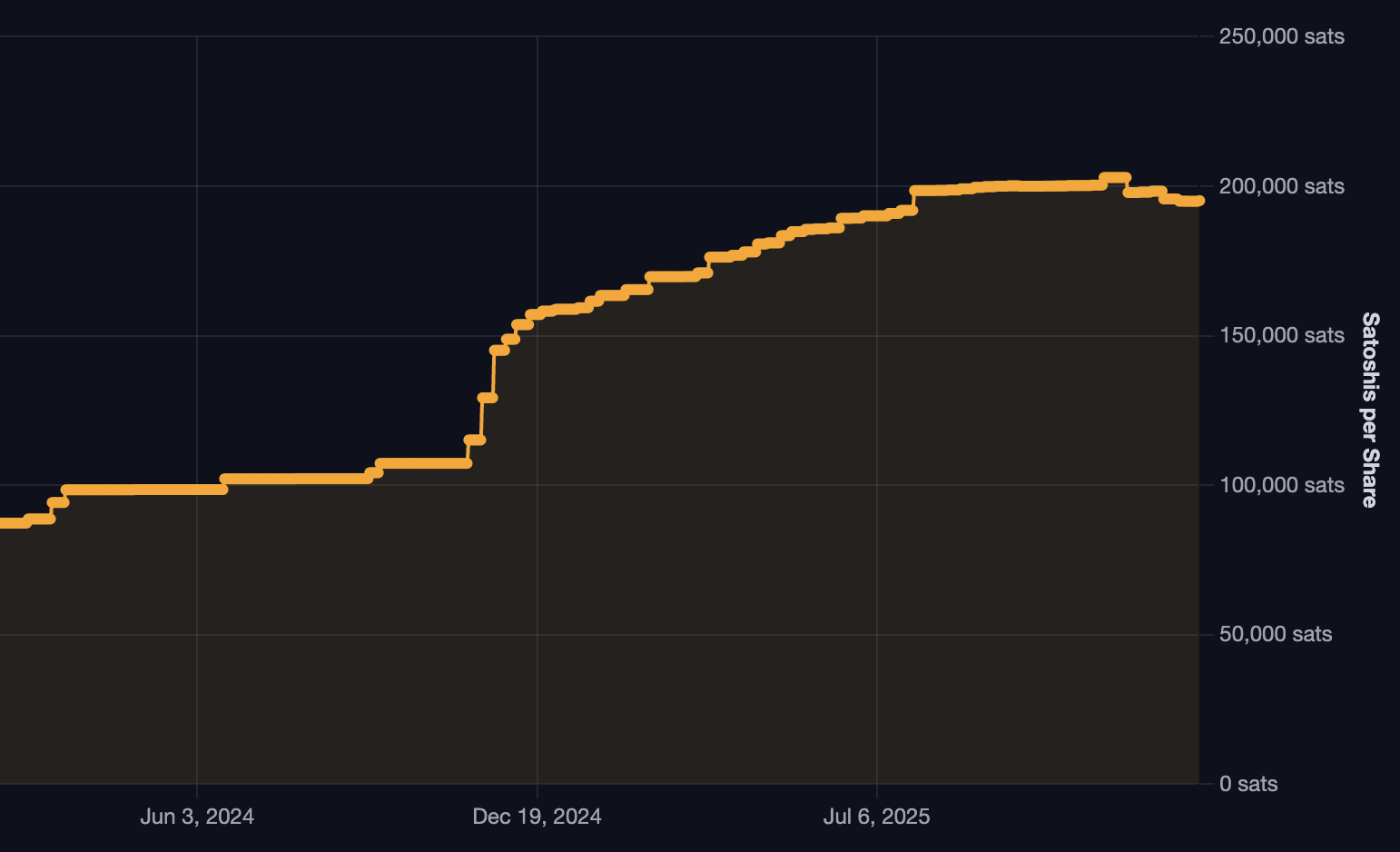 Over the same time period, the company’s BTC purchases increased its holdings by a mere 2.0% from 673,783 to 687,410.