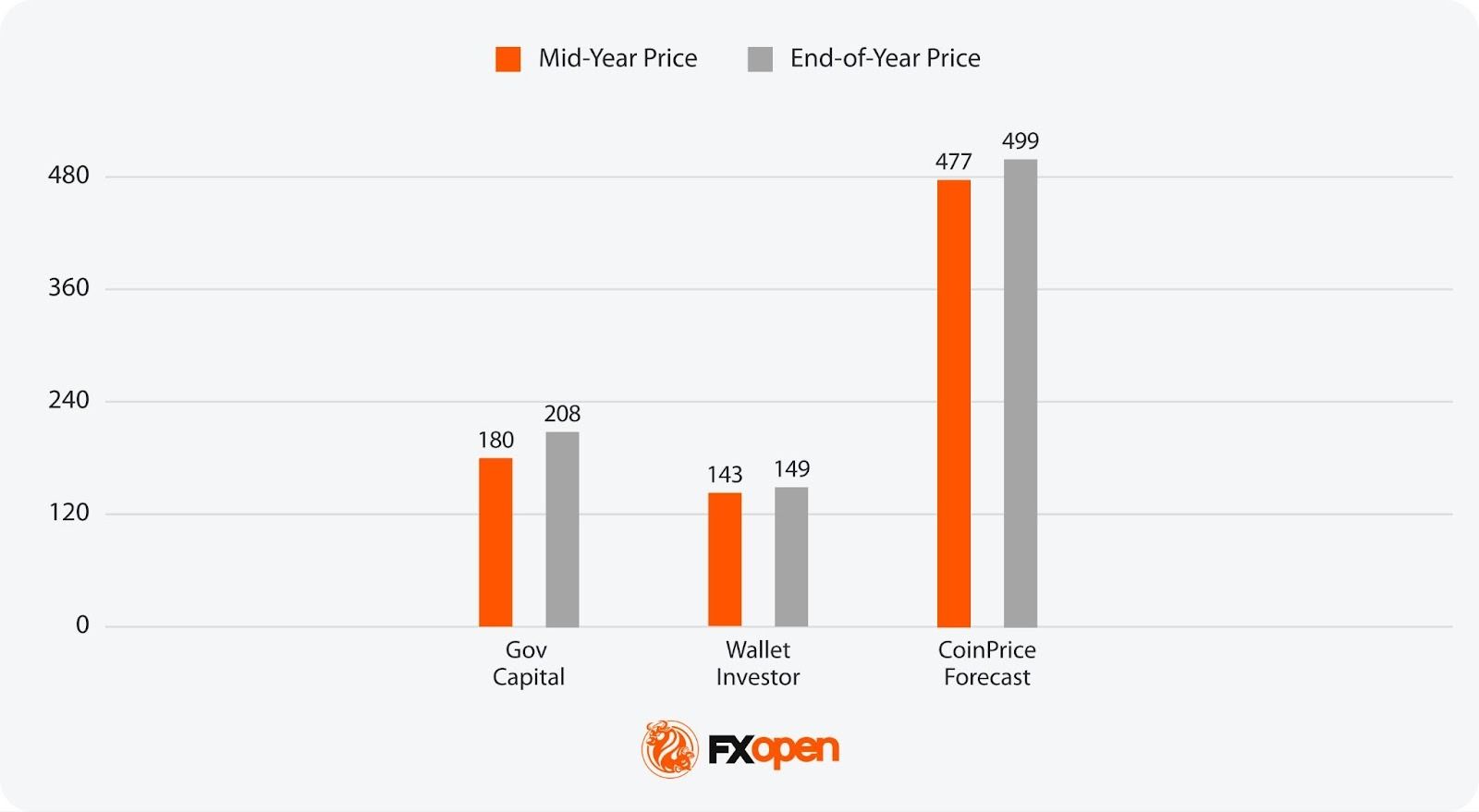 Most Optimistic Projection for End-of-Year 2030: $499 (CoinPriceForecast)