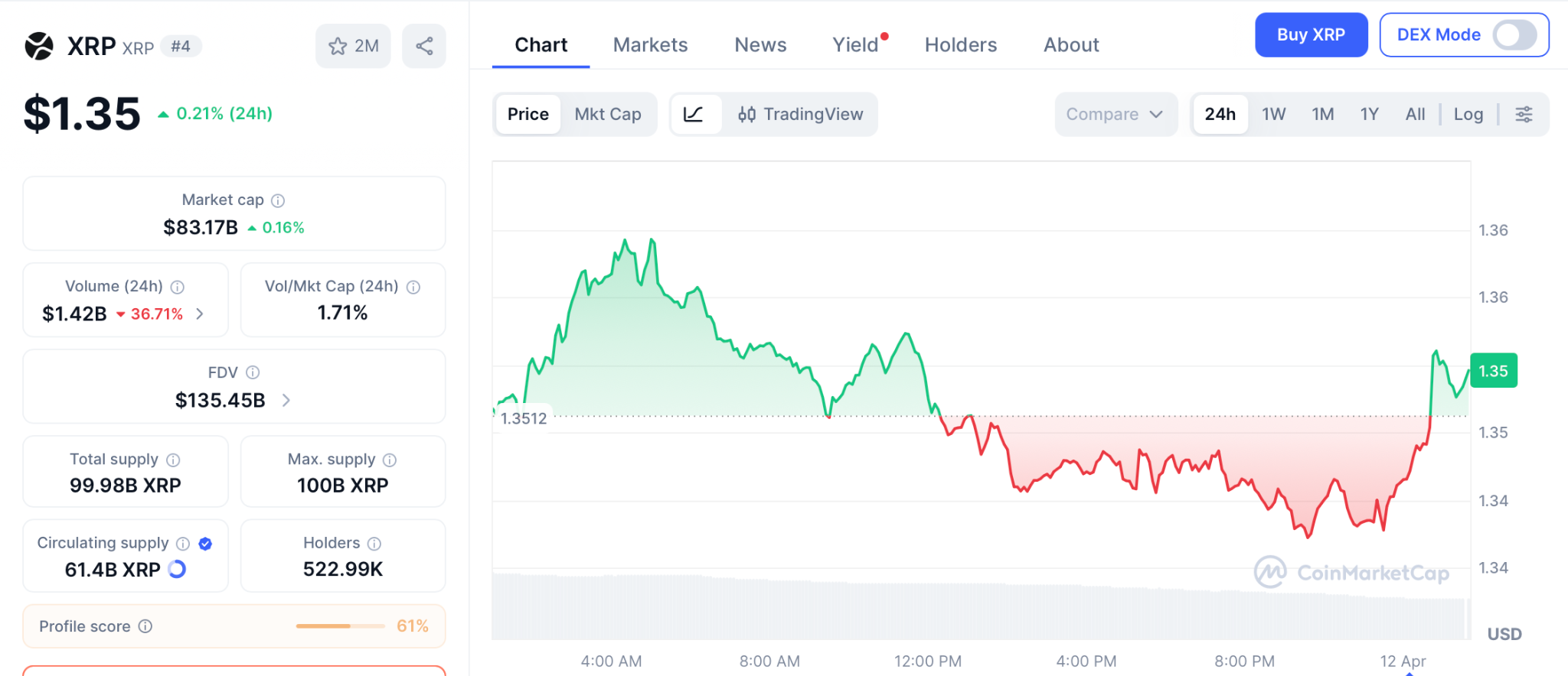 Bitcoin traded hands around $71,600 as of press time, while ether (ETH) fell to about $2,200. XRP slid to $1.33, and the broader CoinDesk 20 index similarly fell to 1,188.52 — each of these prices fell just under 2% in the immediate aftermath of Vance’s press conference.