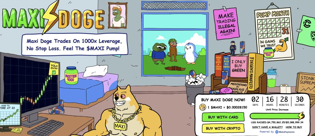Maxi Doge is leaning directly into that rotation. It is built around the high-leverage trader mindset, targeting the same crowd that chases fast-moving narratives and short-term catalysts. The presale sits around $0.0002815 with roughly $4.75M raised, showing steady inflows rather than a one-time spike.