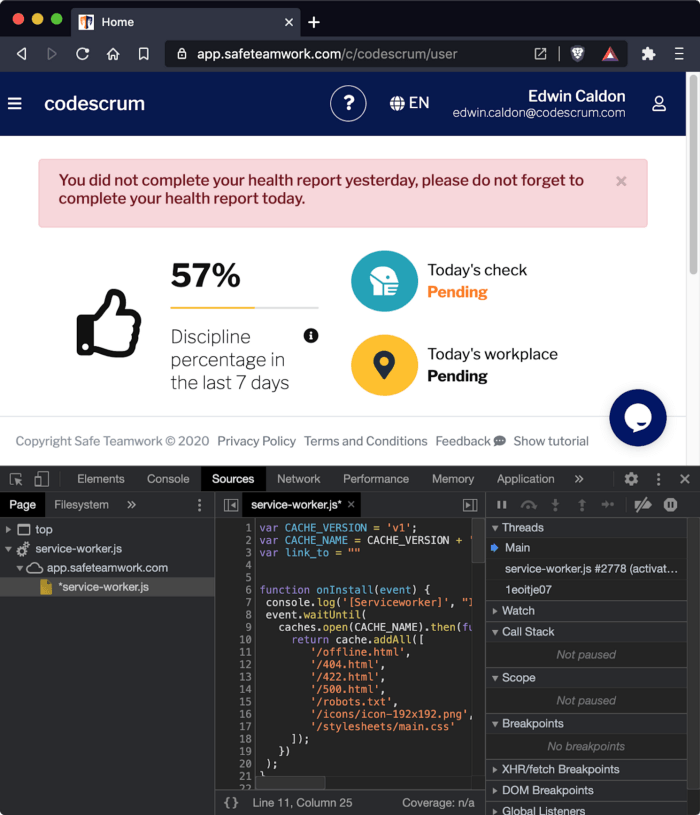 is a JSON file that configures the PWA metadata, such as the name and short name of the application, icons, background color, orientation, start URL, and other information. For instance, you can check this information for our Safe Teamwork application at: