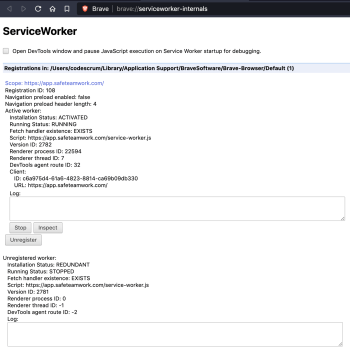 A service worker is a service that runs in the browser, and the JavaScript (sw.js) file is loaded as a regular resource of the application so we can interact with it without having to install the PWA, i.e. it does not run the install, activate, and fetch events. We can explore this service in the browser through chrome://serviceworker-internals/ internal page: