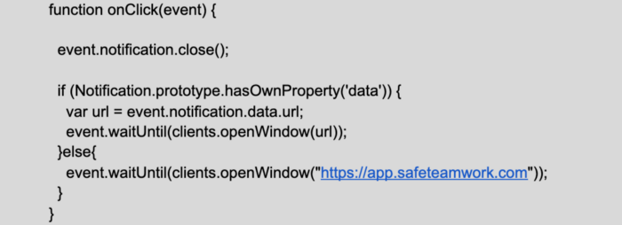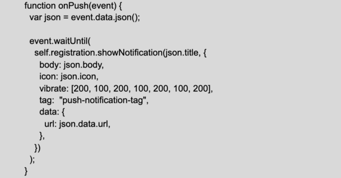 The event parameter contains information about the notification’s title and message. The icon helps to identify who has sent the message and also the URL that redirects the user when it’s clicked on it.