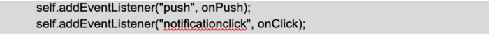 Web APIs and push notifications are one of them. So, in the JavaScript script (sw.js) we have:
