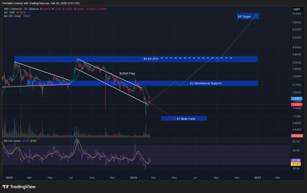 Several catalysts could accelerate this move, including institutional inflows following the approval of U.S.-listed XRP ETFs, Ripple’s expanding list of partnerships, and the potential passage of the U.S. CLARITY bill this year.