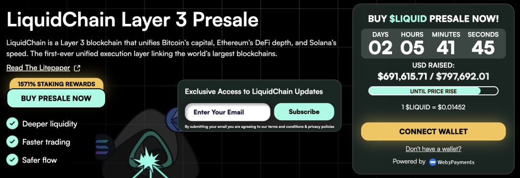LiquidChain ($LIQUID) is a Layer 3 infrastructure project built around a specific and underserved problem: fragmented liquidity across Bitcoin, Ethereum, and Solana. Its Unified Liquidity Layer fuses BTC, ETH, and SOL ecosystems into a single execution environment.