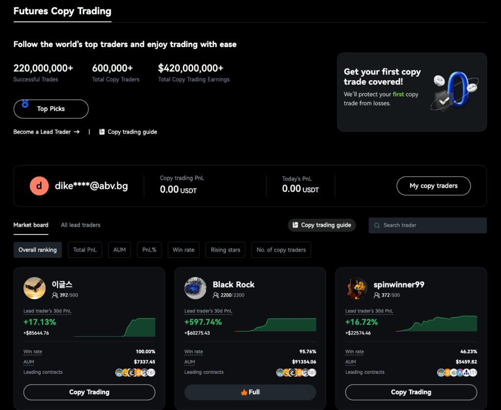 In addition to the above, BTCC also supports Copy trading. For those unfamiliar, this trading feature is very popular in the industry, and it enables users to replicate the trading strategies of other traders on the platform.