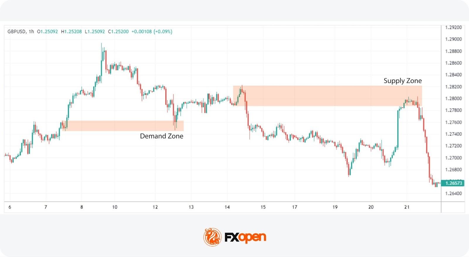 - A supply zone represents a level at which selling interest overcomes buying pressure, causing the price to fall sharply. This is typically where sellers find the asset overvalued and decide to exit their positions or open new positions to sell.