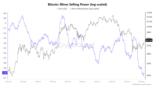 On-chain metrics confirm that miner reserves have been in steady decline, though selling power is now visibly contracting.