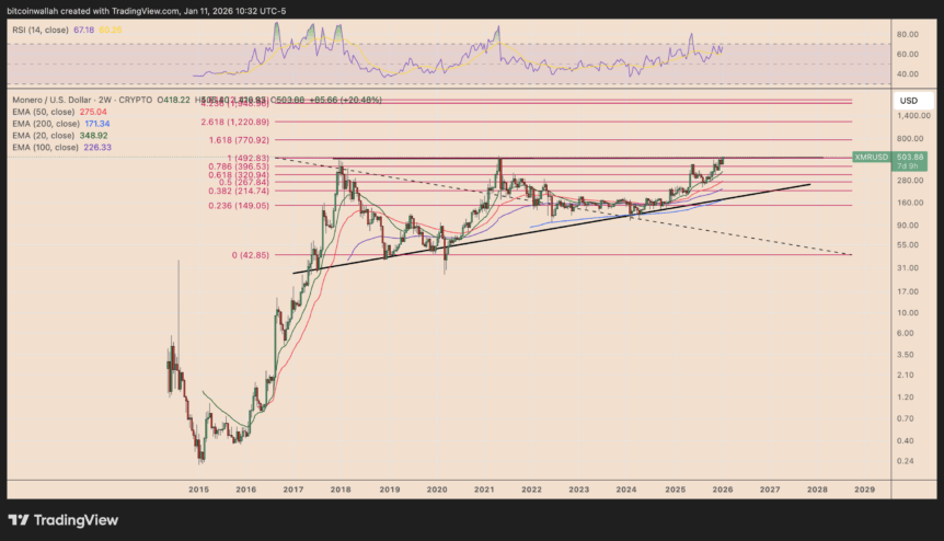 XMR Surges to $500 for First Time Since 2021 as Zcash Declines