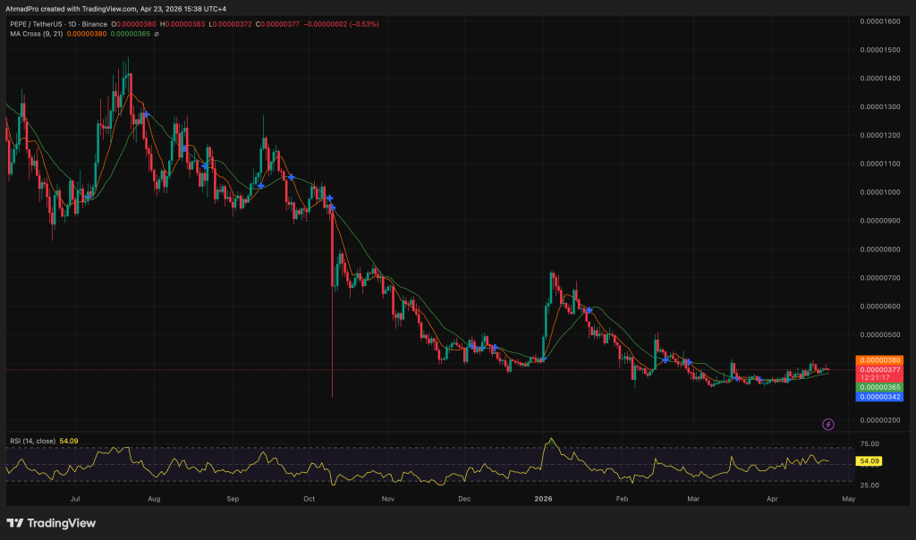 PEPE’s $1.62 billion market cap means the math on a 10x from here gets uncomfortable fast. Reaching even half its all-time high requires sustained institutional flow that, candidly, has not yet materialized at scale.