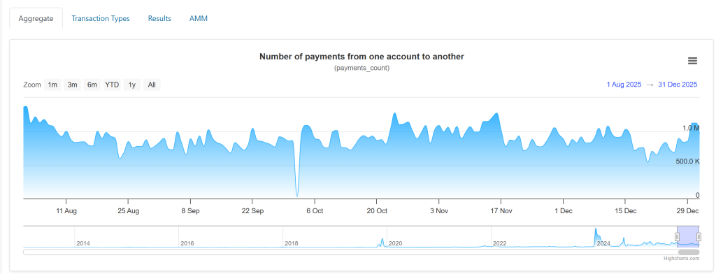 The XRP Ledger (XRPL) has recorded a sharp rebound in network usage since mid-December, with daily transactions rising to roughly 1 million, according to Ripple’s public metrics dashboard.