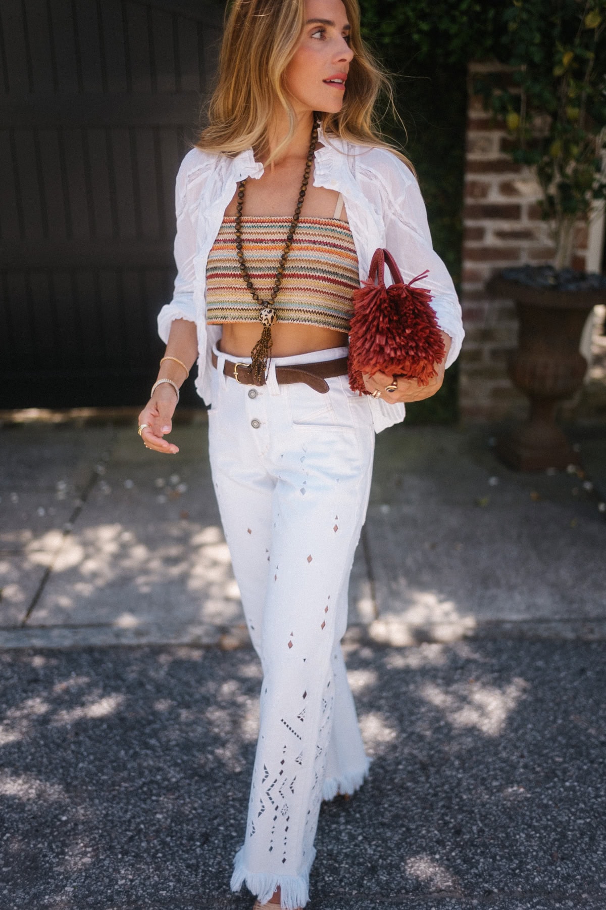 Isabel Marant Blouse (old, similar here and here), Rosie Assoulin Top (old, similar here and here), Isabel Marant Jeans (more sizes here), JB x Margaux Heels, Chanel Bag, Silvia Furmanovich Necklace (similar, less expensive here)