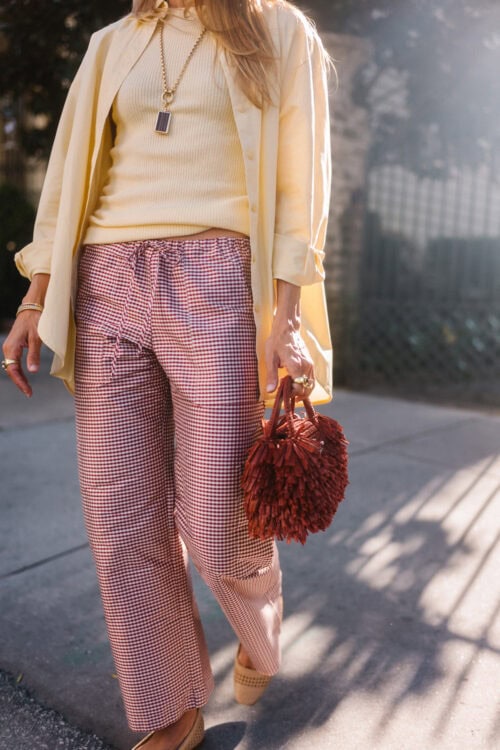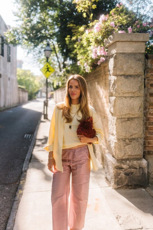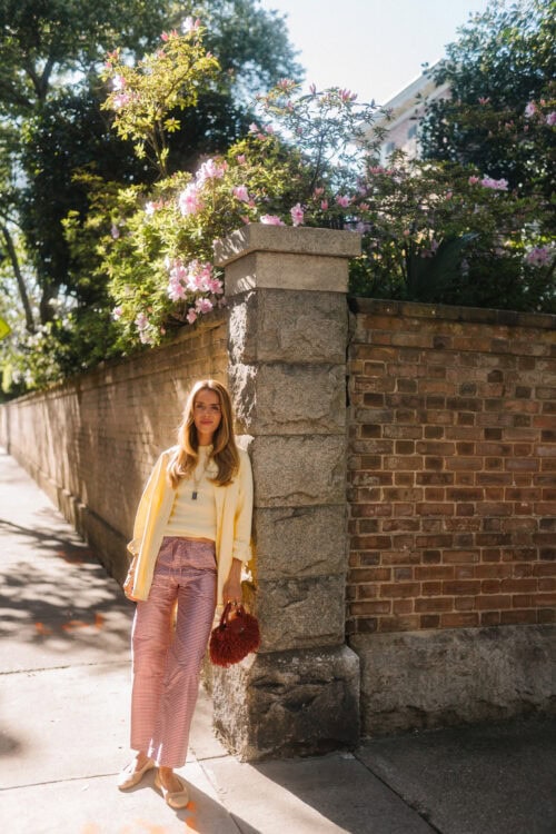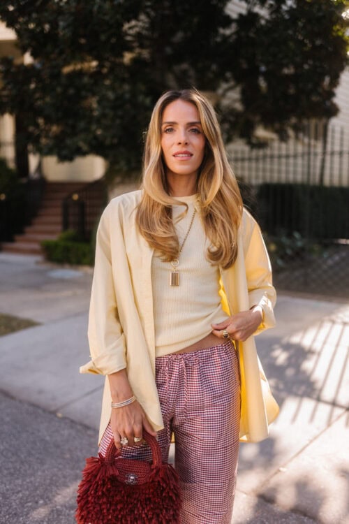 The shades I’ve been loving this spring—butter yellow, faded coral, soft pink, and chartreuse—feel optimistic and directional. I like keeping it focused—one or two tones that carry through the look and make everything feel cohesive.