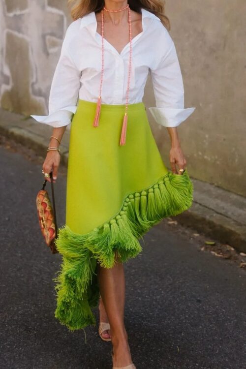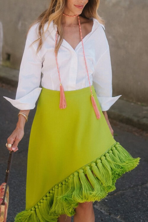 I spy tassel details everywhere right now, and I’m fully into it. There’s something about the way it moves that makes even the most classic pieces feel a little more dynamic. A clean skirt with a tassel hem, a structured top with a soft finish, or a woven bag with a subtle drop all bring in that added dimension.
